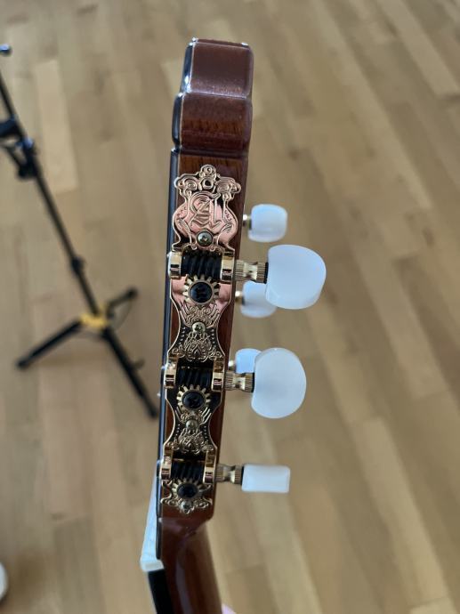 Jedna od glavnih značajki klasične linije je razina detalja u konstrukciji. U završnoj doradi ove gitare, pored odabira drva za konstrukciju i izbora zlatnih mašinica, impresivna je izvedba rozete i vanjskog ruba (binding).