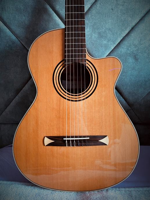 Vrhunska crossover elektro-klasična gitara; setupirana za MID tension. Mekana i svirljiva.