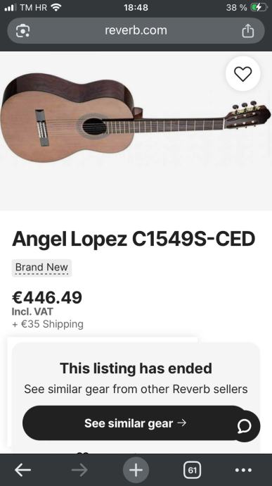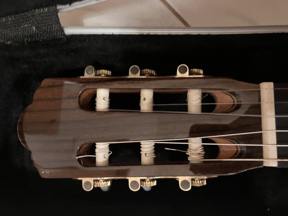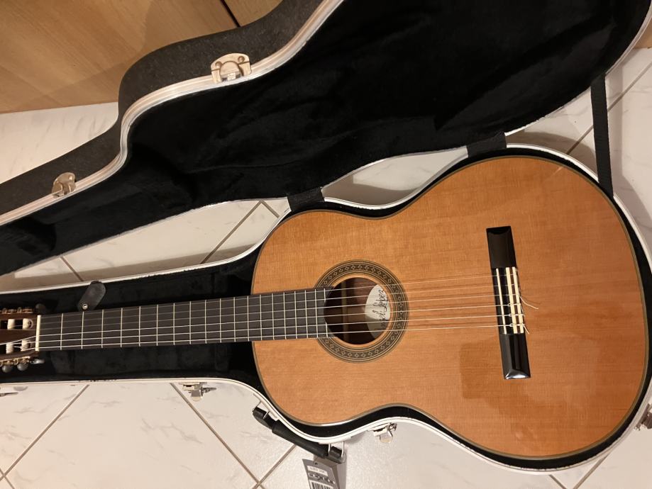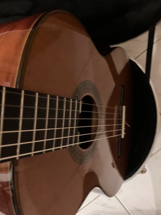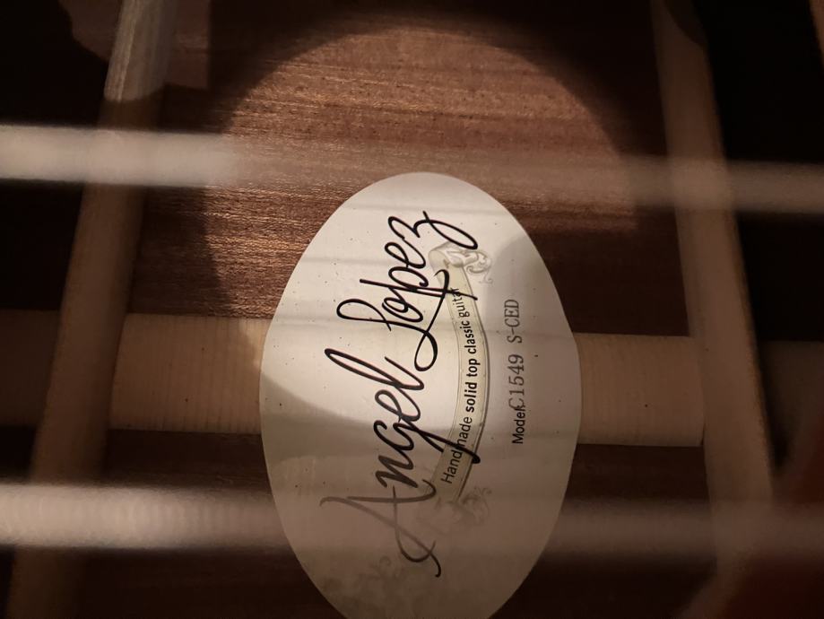 Vrhunska Angel Lopez gitara, model C1549 s CED, gitara je mogu potvrditi po zvuku bolja i od Alhambre 6 i 7p. Visoki zvukovi Lopeza su nevjerojatni, mogu reci i da su bolji od Alhambre i Asturiasa, jer sam njih imao i svirao, ni sam nisam mogao vjerovati kakav zvuk gitara ima. Glasna, gitara, izraženih visokih preciznih tonova, i uravnoteženih basova. Gitara je nova, cijena nove u dućanu je od 420 do 450 eura i ide uz Triton kofer koji je sam koštao 400 eura. Poveznice za cijene su vam u slikama. Gitara se može kupiti i odvojeno od kofera.