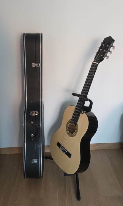 Gitara sa slika prodaje se u kompletu sa koferom, stanje odlično vidljivo na slikama. Cijena je za komplet. Stalak se ne prodaje.