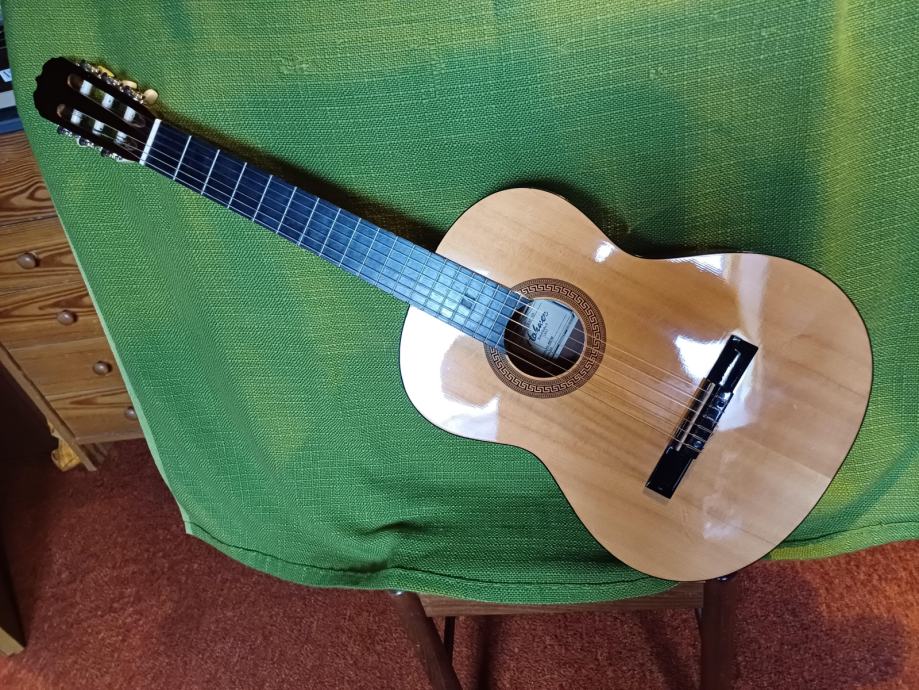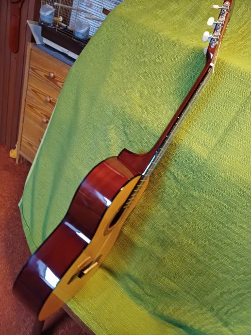 Suho drvo boje mahagoni , izvrstan ( puni , topao ) zvuk . Žice su nove kao i rezervne .