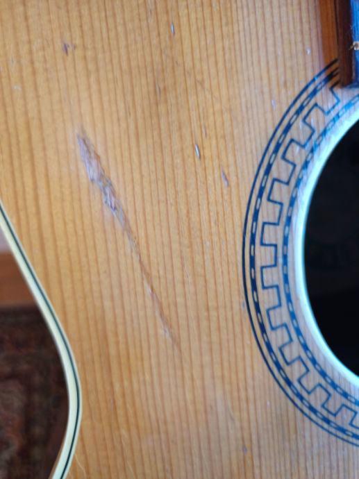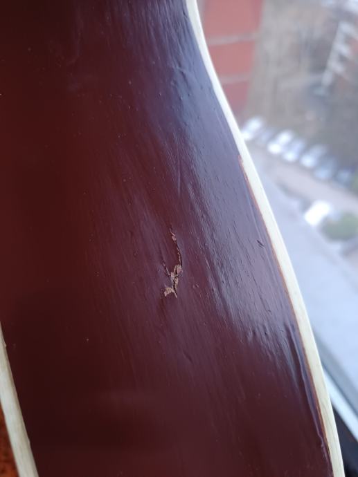 Na gitari su vidljivi tragovi korištenja i godina koje ima.