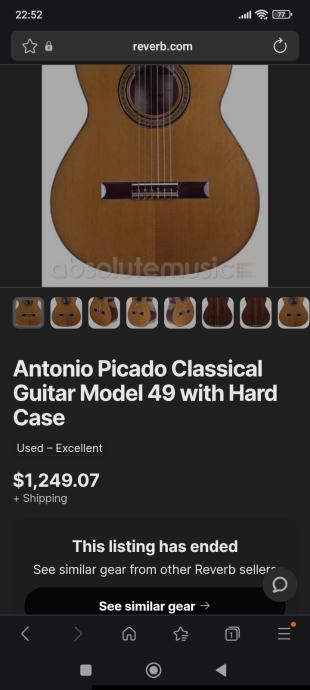 Gitara je kupljena 1996 godine u radnji dotičnog graditelja iz Berg ( Španjolska).
