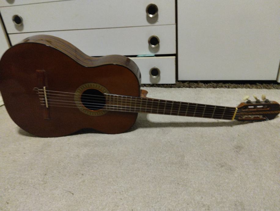 Prodajem vrlo vrijednu klasičnu gitaru,ručno izrađenu od ružina drva i smrekovine.Ima prekrasan topao zvuk.Gitara je jednom restaurirana kod istog majstora koji ju je napravio,a koji je imao malu radnju u nekadašnjem Balkan prolazu u Zagrebu, restauracija se na njoj i vidi, no to ju ne čini manje funkcionalnom odnosno ne umanjuje kvalitetu njenog zvuka. Idealan je instrument za srednju glazbenu školu ili sviranje sebi za dušu.Gradio je je najvjerojatnije Brodarec.Stara je 50tak godina.Nema naljepnicu kojom mogu dokazati ime majstora jer on nije bio sklon naljepnicama sa svojim imenom,međutim,vidi se da ju je pravio s ljubavlju i da je vrlo lijepo izrađena.