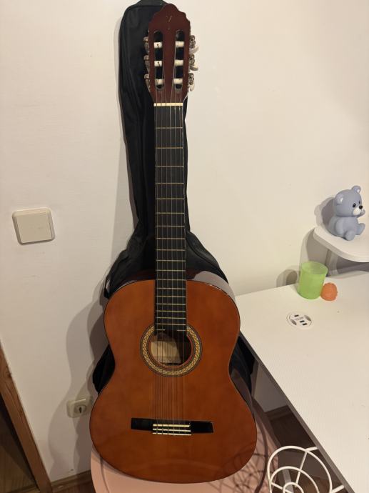 Valencia CG150K gitara - puna veličina (4/4) savršena za tinejdžere ili odrasle početnike. Najlonske žice nudi ugodan ton i lagano djelovanje, što je čini idealnom za neiskusne svirače. Komplet uključuje i Valencia torbu.