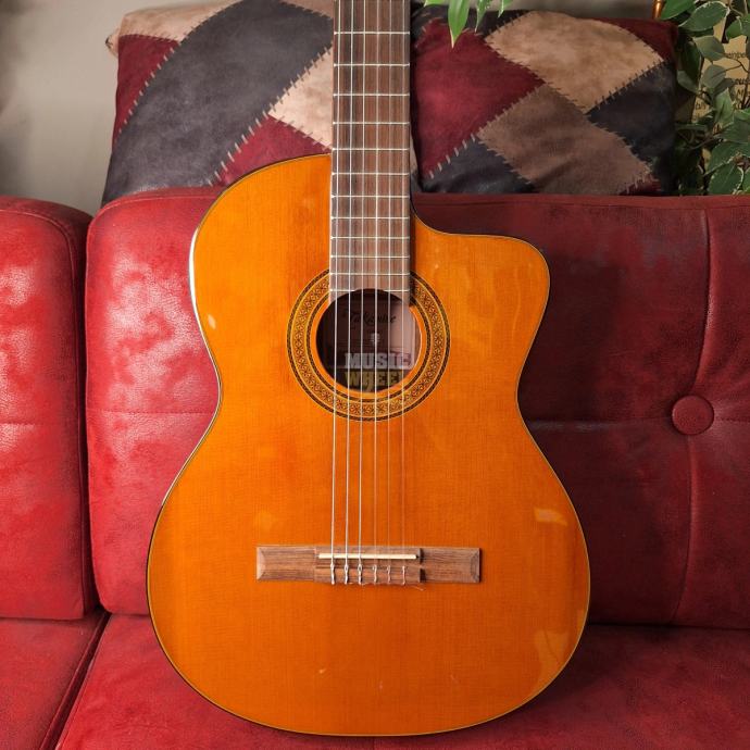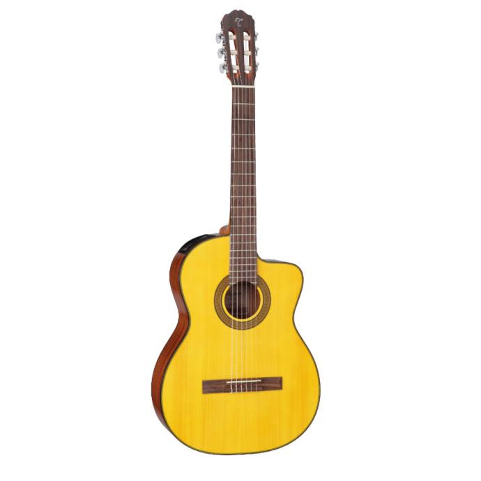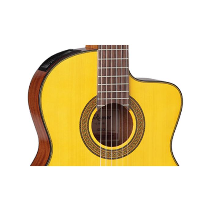 TAKAMINE GC3CE-NAT je 4/4 elektro-klasična gitara iz Takamine G serije gitara. Ovaj model ima punu prednju ploču od smreke, stranice i zadnju ploču od mahagonija s venecijanskim cutawayem i Takamine TP-4T ozvučenjem.