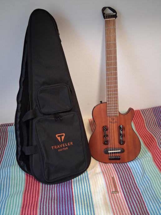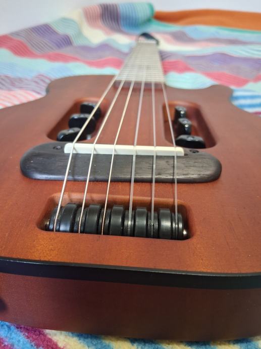 Elektroklasična putna gitara pogodna za tiho vježbanje sa slušalicama, ali može ju se i na druge načine koristiti. Svirao sam ju svega 3 puta na ulici. Stanje besprijekorno. Naručeno u Listopadu 2025 s Thomanna. Dolazi s futrolom i imbusom za truss rod.