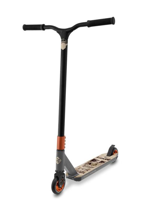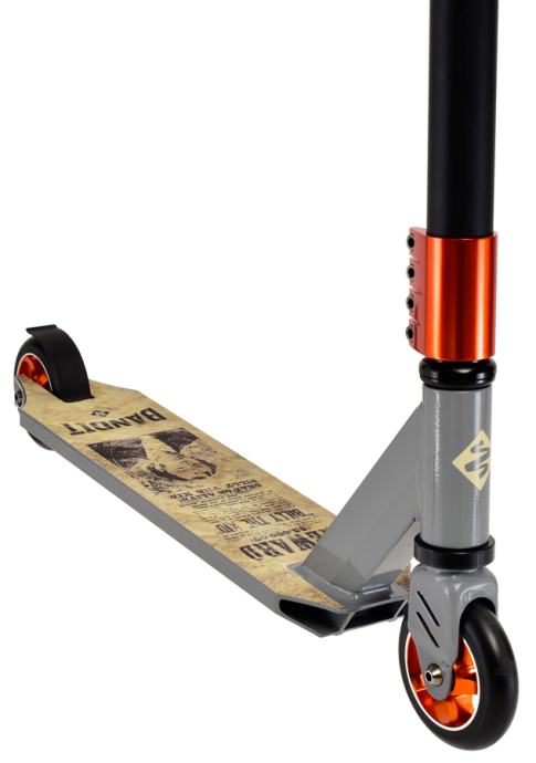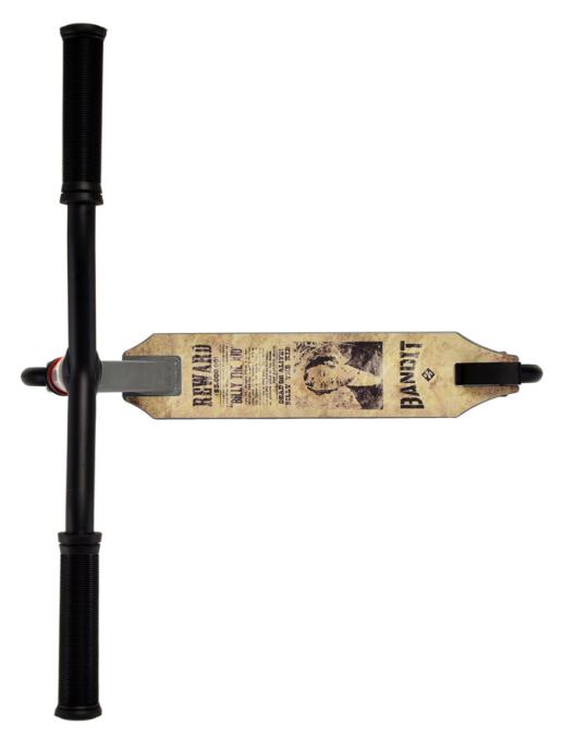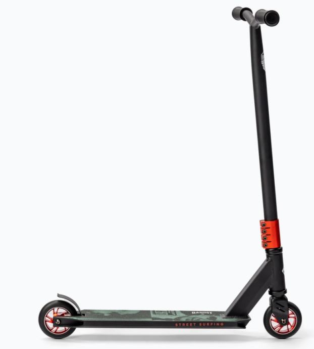 Romobil za freestyle Bandit marke Street Surfing romobil je nove generacije, širine upravljača 54 cm i proširenog gazišta od 11 cm. Kompresijska tehnologija HIC osigurava čvrstoću i pri skokovima, a ležajevi ABEC 9 pružaju glatku vožnju. Upravljač je od slitine aluminija 6061, maksimalne čvrstoće i rukohvata od izdržljivog i mekog materijala ODI, vilicom od čelika, kotačima 100 mm x 24 mm , 88A, PU high rebound s aluminijskom jezgrom. Dimenzije romobila su (D x Š x V) 66 x 54 x 84 cm, težina je 3,4 kg, a maksimalna nosivost 100 kg.