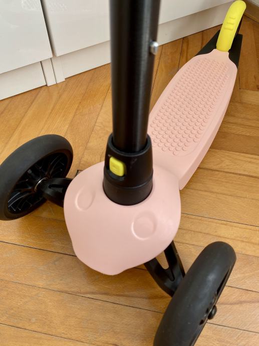 Oxelo roza romobil, kupljen prošle godine u Decathlonu. Malo korišten, u super stanju. Za djecu visine 80 - 115cm. Podesiva visina upravljača. Ima kočnicu na stražnjem kotaču. Odvojiv upravljač za brzo i jednostavno spremanje.