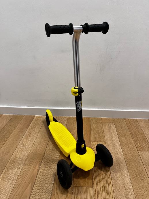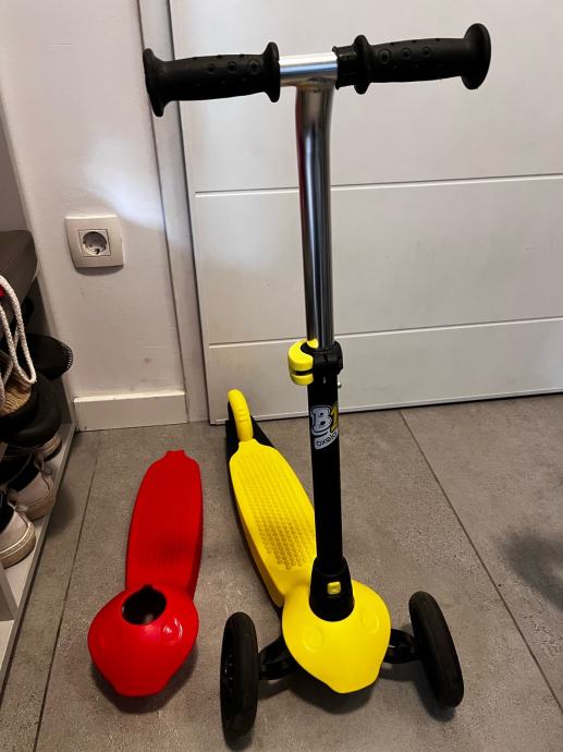 Prodajem dječji romobil B1, kupljen u Decathlonu. Uz njega dolazi i crvena podloga za stajanje (može se zamijeniti sa žutom). Romobil se vrlo lako može rastaviti na dva dijela (donji dio s kotačima i podlogom + gornji dio s ručkom).