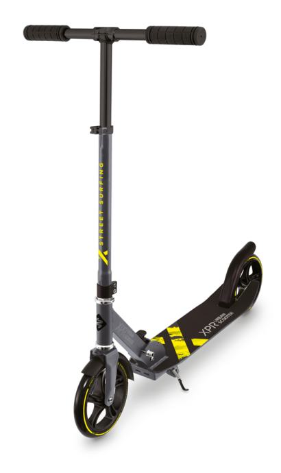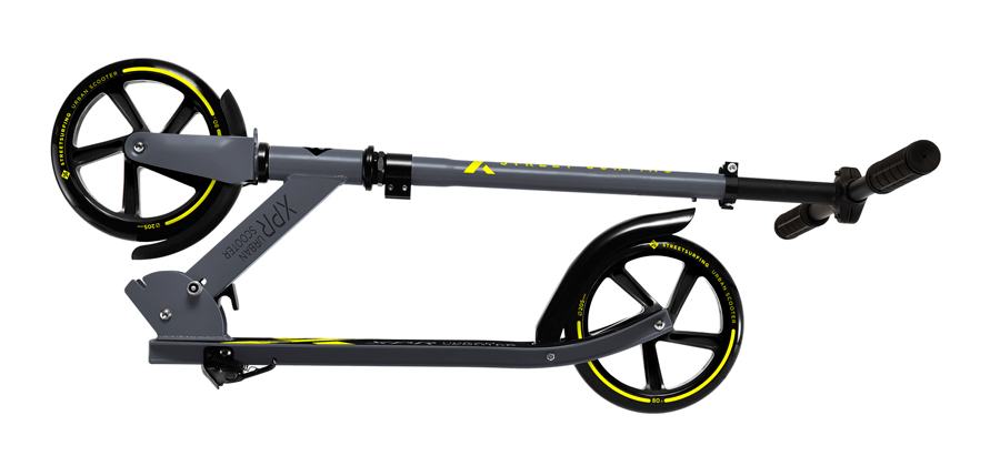 Gradski romobil za djecu i odrasle s kotačima veličine 205 mm i blatobranom. Maksimalna nosivost 100 kg, dimenzije 72 x 47 x 102 cm.