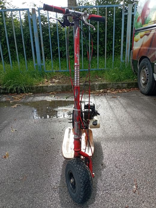 Romobil je 100% ispravan i radi besprijekorno. Iako na oko ne izgleda očuvano, radi savršeno. Kvalitetna i pouzdana Japanska mašina, Zenoah Komatsu G23LH. Jednostavna za održavanje.