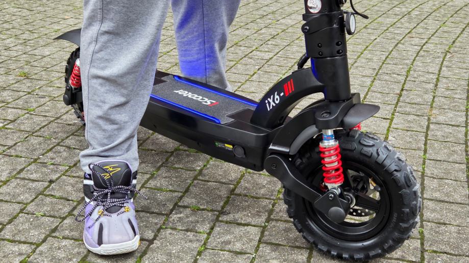 Okvir je izrađen od kvalitetne aluminijske legure, izgleda moderno i čvrsto, a široka platforma za stajanje omogućuje stabilan stav i sigurnu vožnju. Sveukupno, iScooter iX6 je skuter koji pruža snažan dojam u vožnji — pouzdan je, udoban, stabilan i iznimno praktičan.