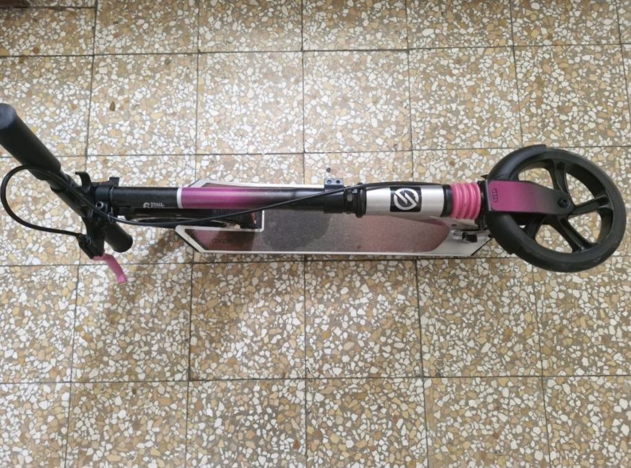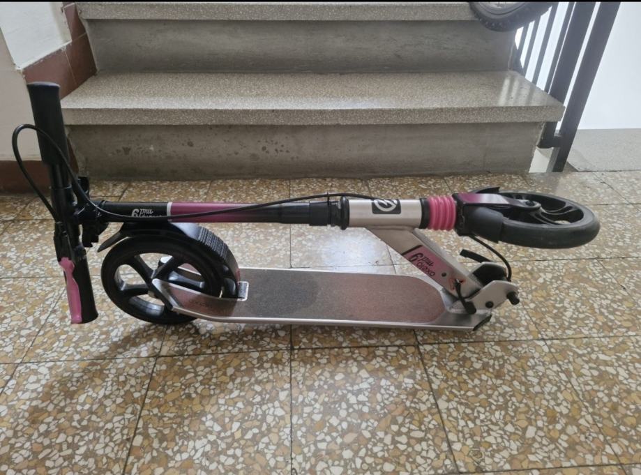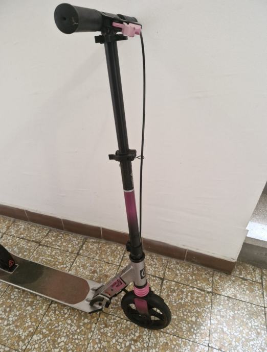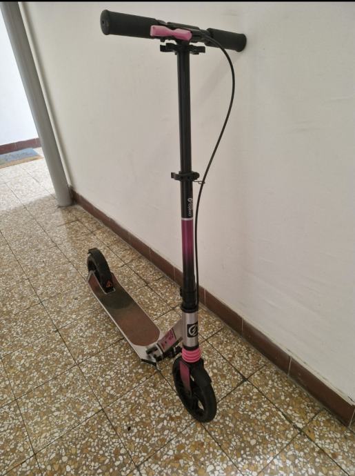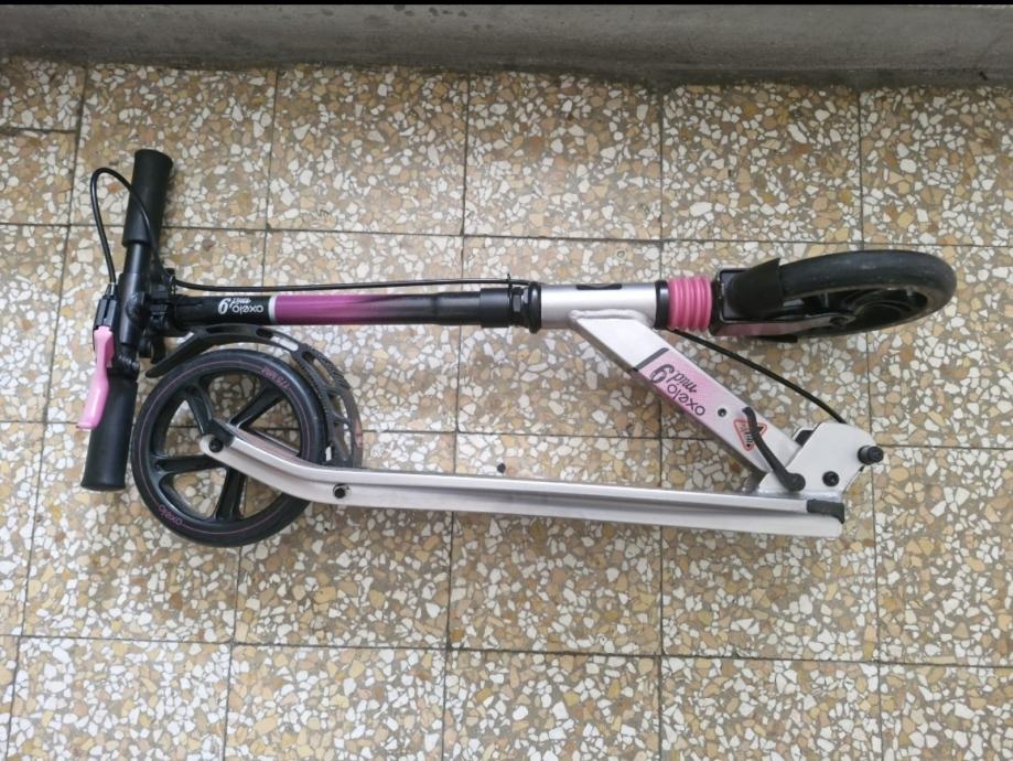 Prodajem rabljeni ružičasti romobil OXCELLO model MID 9 u odličnom stanju, jako malo korišten. Romobil ima čvrstu konstrukciju s crnim i ružičastim detaljima, te velike kotače idealne za vožnju i ručnu kočnicu.