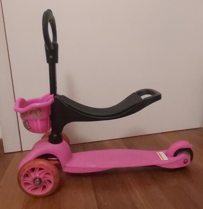 Malo korišten i maksimalno uščuvan romobil od 1-5 godina. Ima 3 kotača i košaricu.