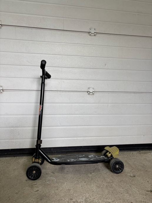 Romobil s 4 kotača, po visini podesive ručke, zadnja nožna kočnica radi, baza ima prednji i stražnji zglob. Vidljivi tragovi korištenja, ali je malo vožen pa točkovi nisu istrošeni.