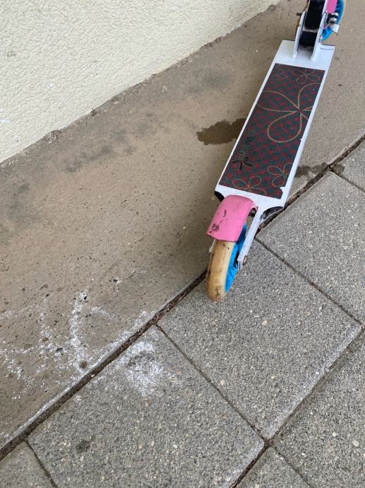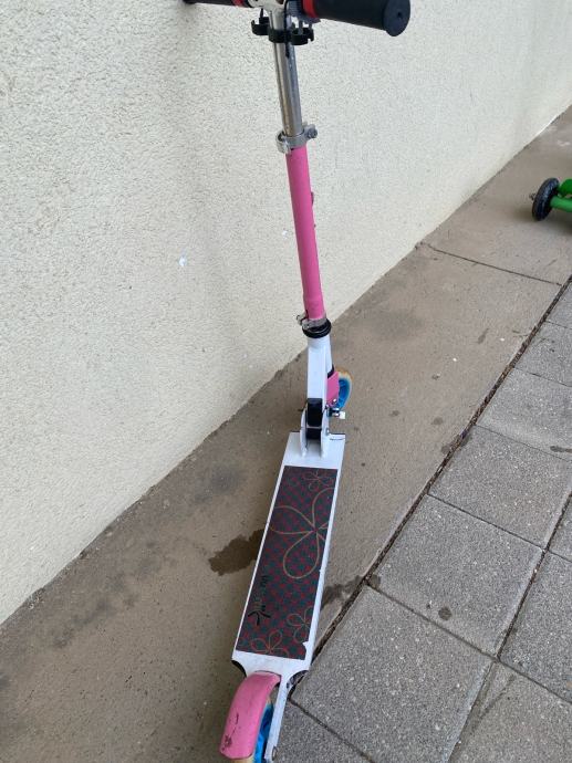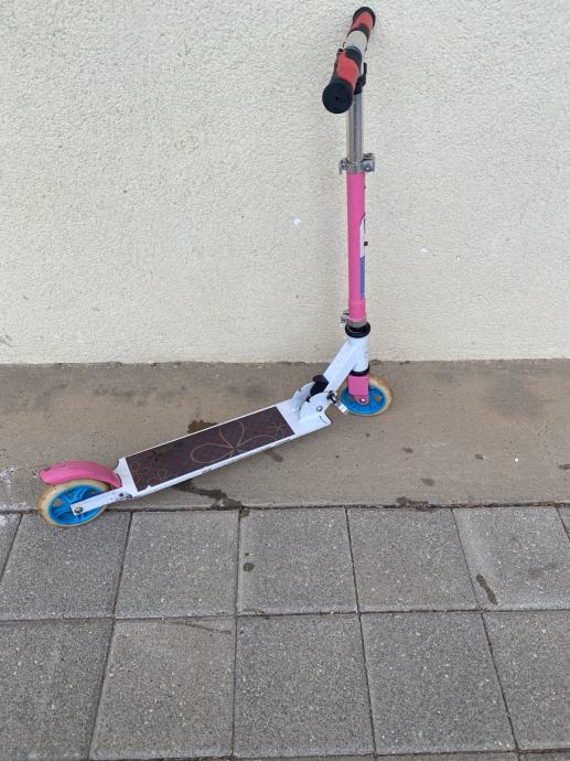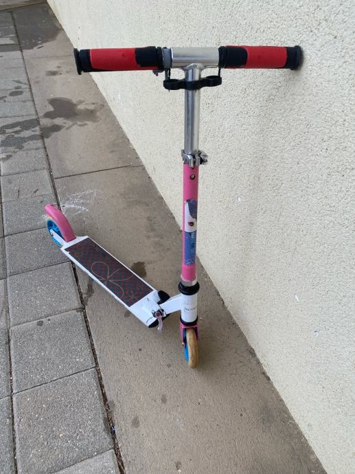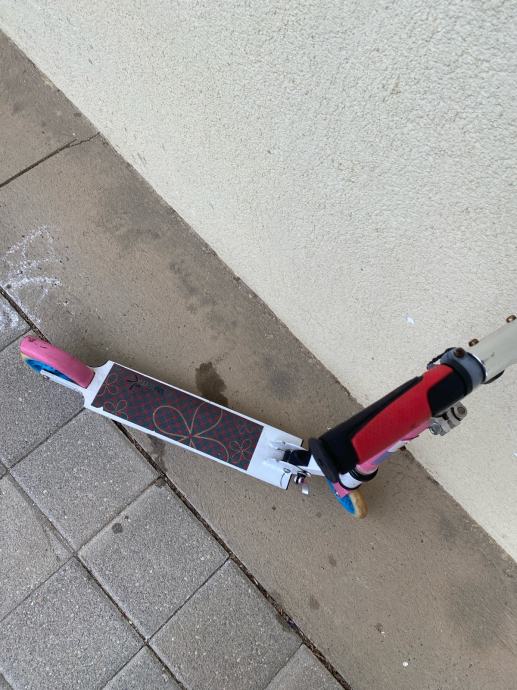 Prodajem dječiji romobil na dva kotača. Radi se o klasičnom romobilu s podesivom visinom upravljača, pogodnom za djecu različite dobi i visine. Kotači su standardne veličine, a romobil se može sklopiti za lakše prenošenje i odlaganje.