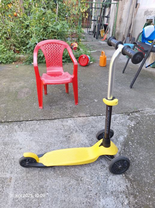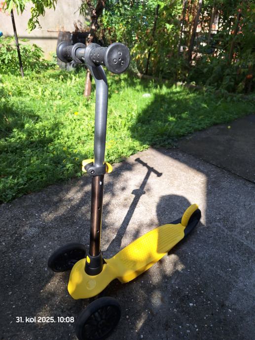 Romobil Decathlon Oxelo B100, neoštećen, kao nov, sa sačuvanom gumicom za lakši transport.