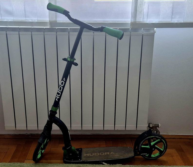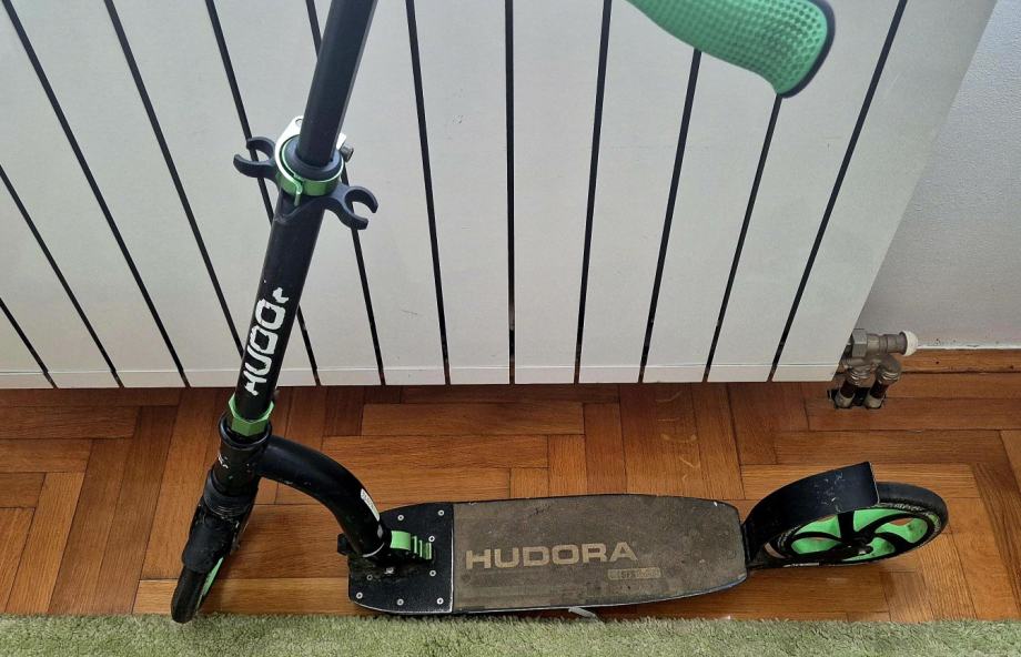Romobil Hudora nosivost do 100kg. Udobni kotači i ručke. Cijena 25 €. Sklapa se radi lakšeg odlaganja. Možete ga preuzeti na Malešnici.