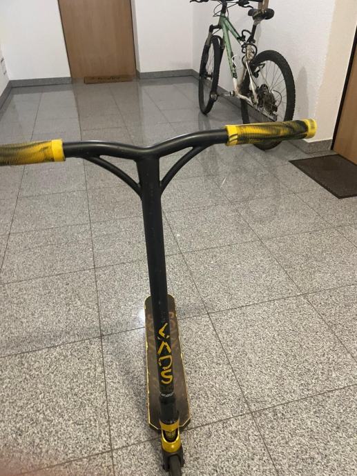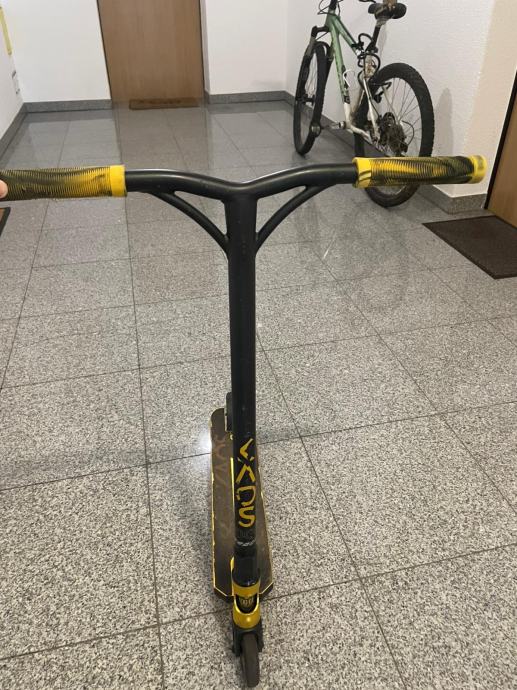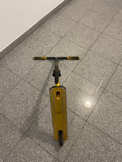 Prodajem rabljeni Maddgear romobil u crno-žutoj kombinaciji, koji je idealan za trikove i zabavu. Romobil je korišten ali u dobrom stanju s čvrstim upravljivim dijelom i izdržljivom platformom. Savršen je izbor za one koji traže kvalitetan romobil za freestyle vožnju.