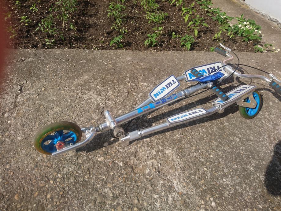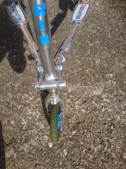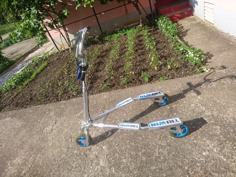Prodajem aluminijski sklopivi romobil na tri kotača za odrasle, mogućnost vožnje i jednog djeteta.