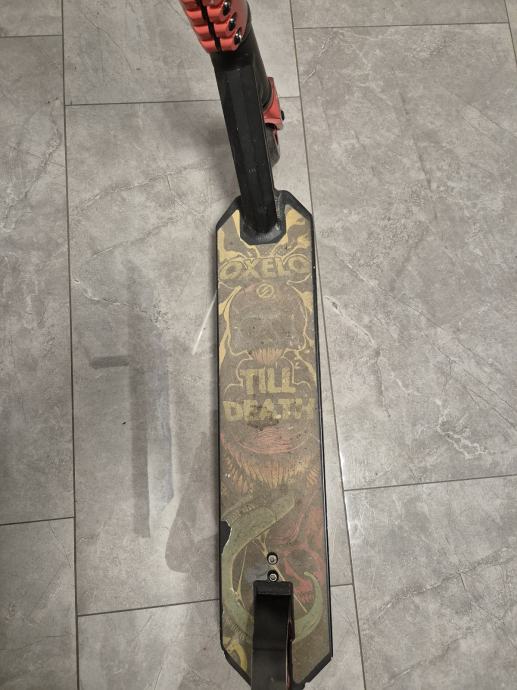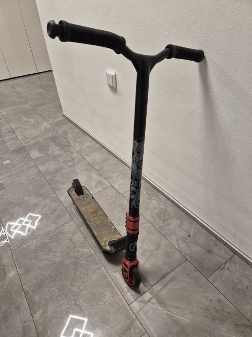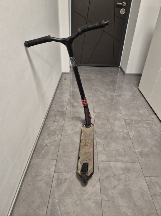 Romobil za trikove iz Decthlona kupljen prije 2 godine. Dosta korišten ali i dalje dobar. Dolazi s pegovima.