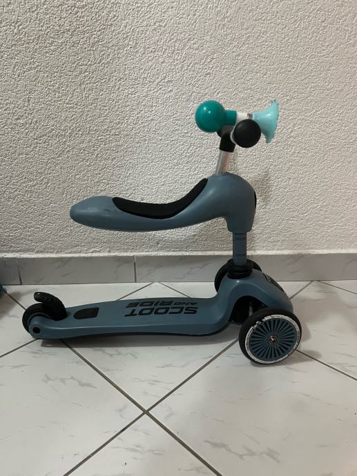 Prodajem dječji romobil Scoot and Ride u sivo-plavoj boji. Radi se o modelu koji kombinira sjedalicu i romobil u jednom, pa se može koristiti na dva načina. Ima tri kotača za stabilnost, podesivo upravljalo s mekanim ručkama i sjedalicu koja se lako skida. Uz romobil dolazi i ukrasna trubica na upravljalu.posjedujem i orginal kutiju!