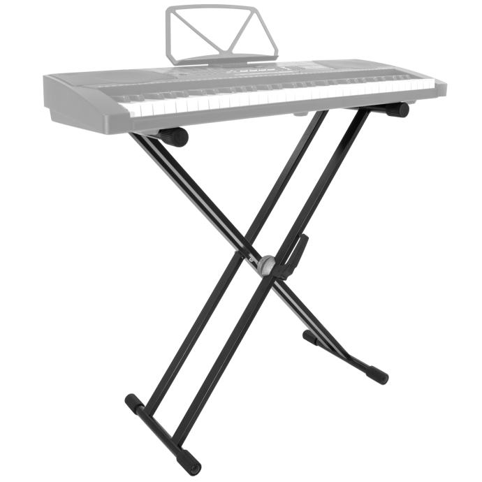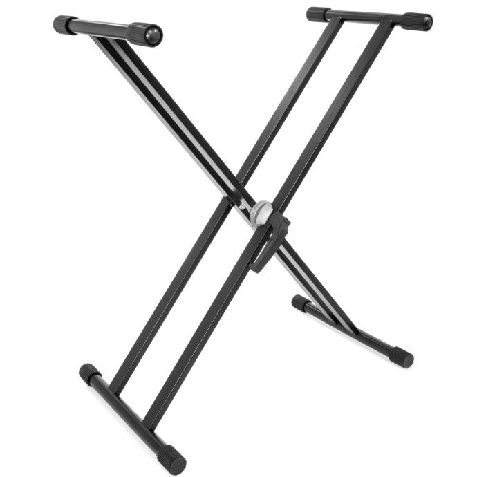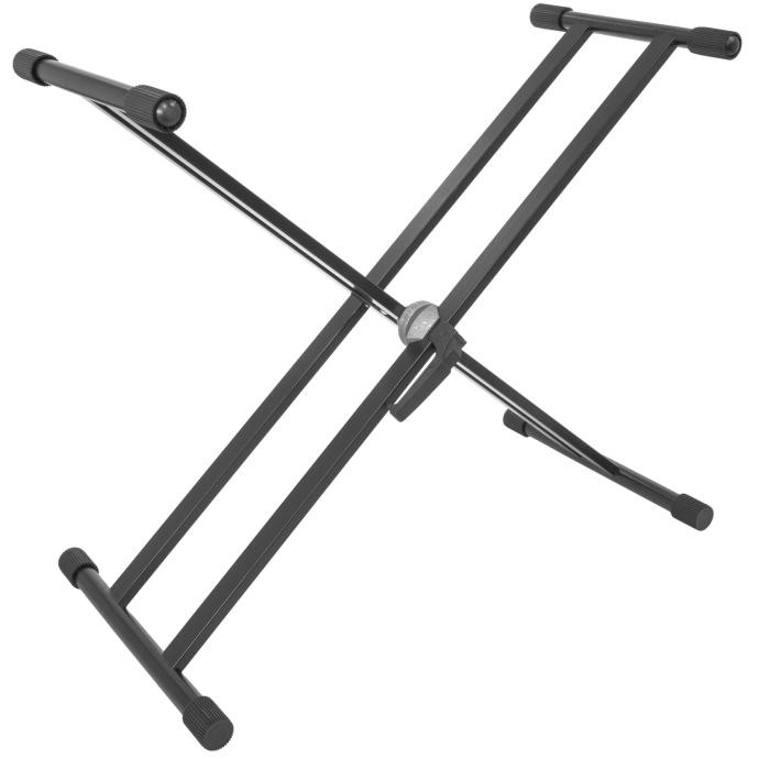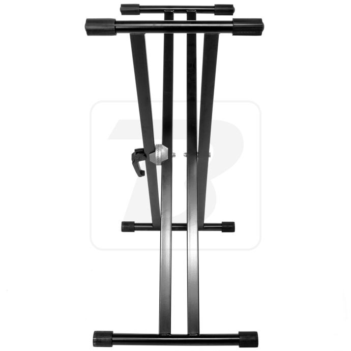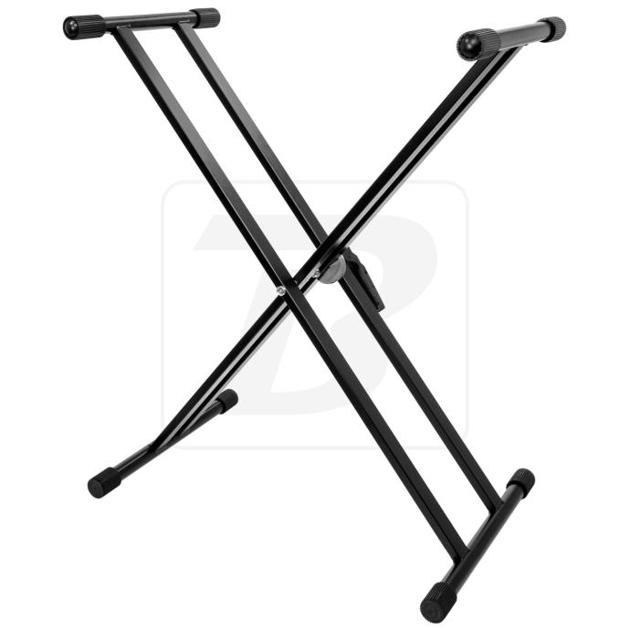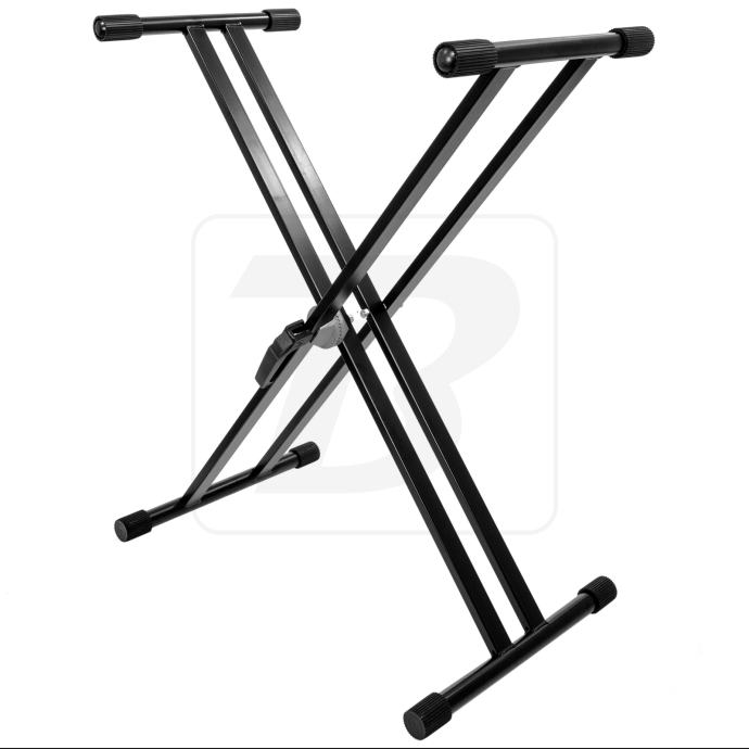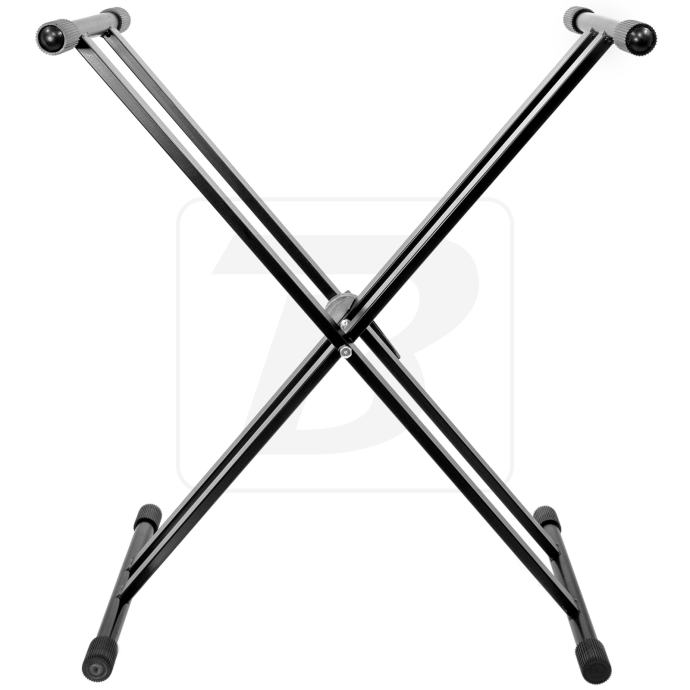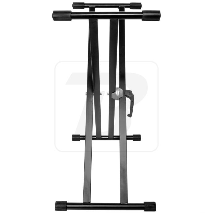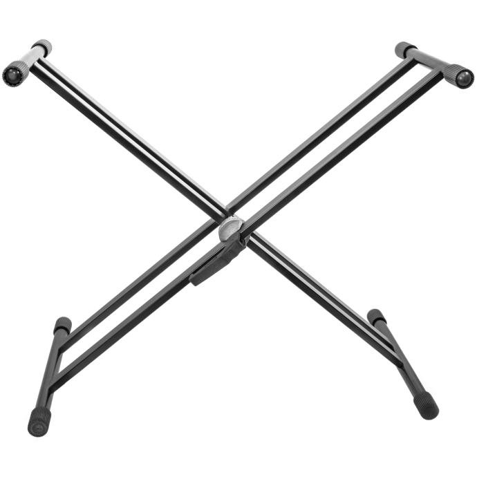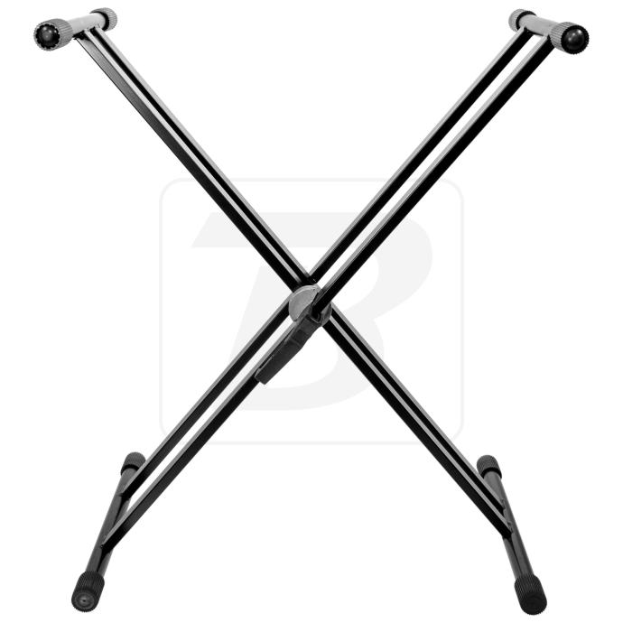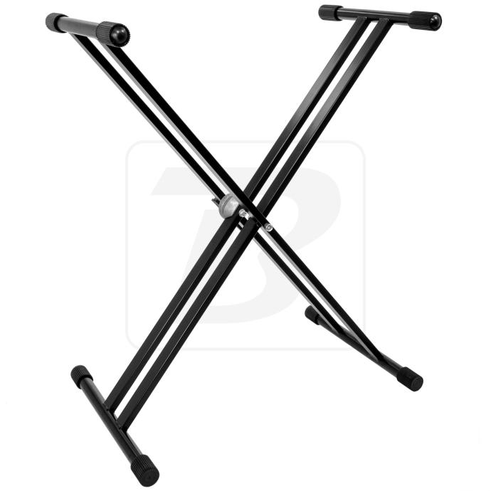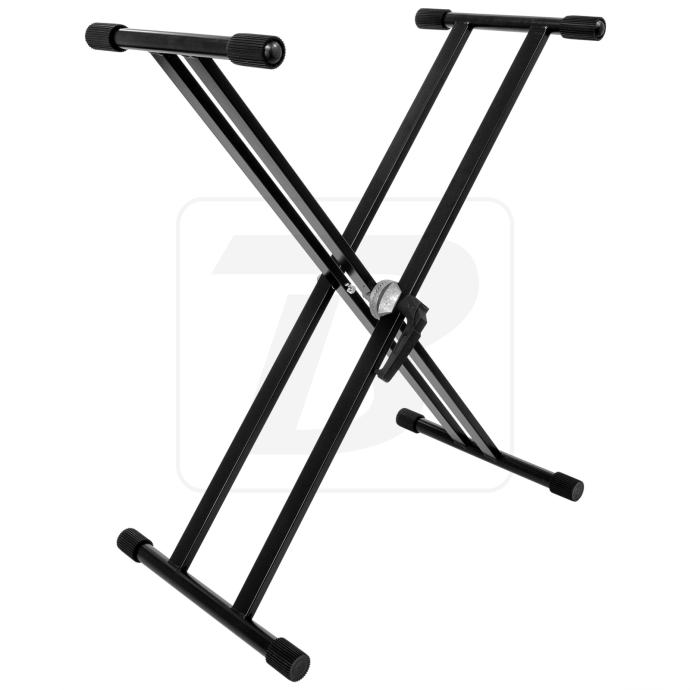 Stativ za klavijaturu u obliku slova X s dvostrukom šipkom, također upotrebljiv za DJ kontrolu na flightcaseu. Maksimalno podržano opterećenje od 20 kg, podesivo po visini od 67 do 92 cm. Crna boja.