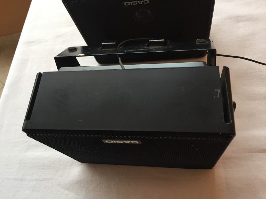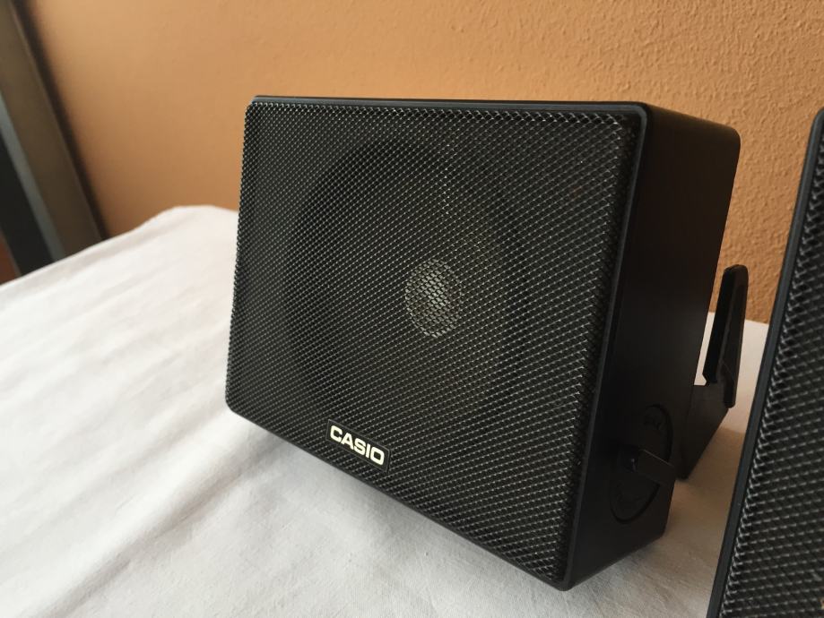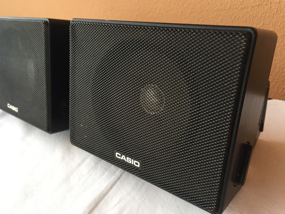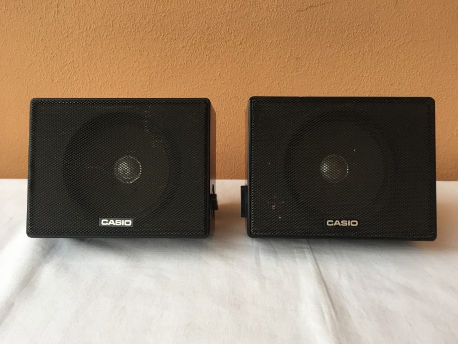 Isključivo u paru za 10 € (fiksna cijena), prodajem dva zvučnika za synthesizer, marke Casio. Ispravni su, a jednom je izmijenjen kabel. Fotografije priložene uz oglas prikazuju ovdje oglašene predmete.