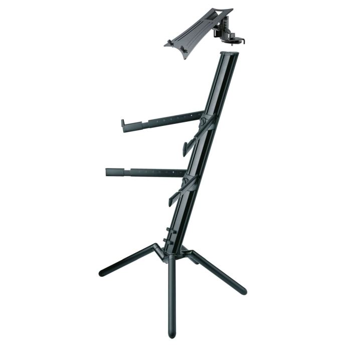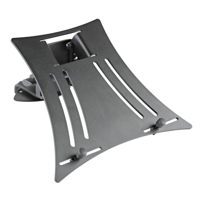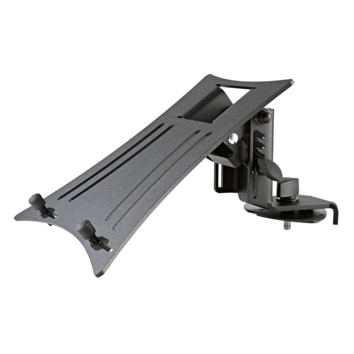 Dopadljiv držač za laptop za »Spider Pro« i »Baby Spider Pro«. Držač za laptop se pričvršćuje na gornji kraj stalka za klavijaturu »Spider Pro« ili »Baby Spider Pro« pomoću krilate matice i potporne ploče. Aluminijska polica može se podesiti vodoravno ili naginjati u tri položaja. Pojedinačno podesive zaporne igle s gumenim poklopcima omogućuju upotrebu svih uobičajenih modela laptopa, miksera itd.