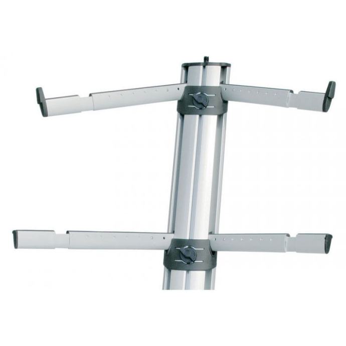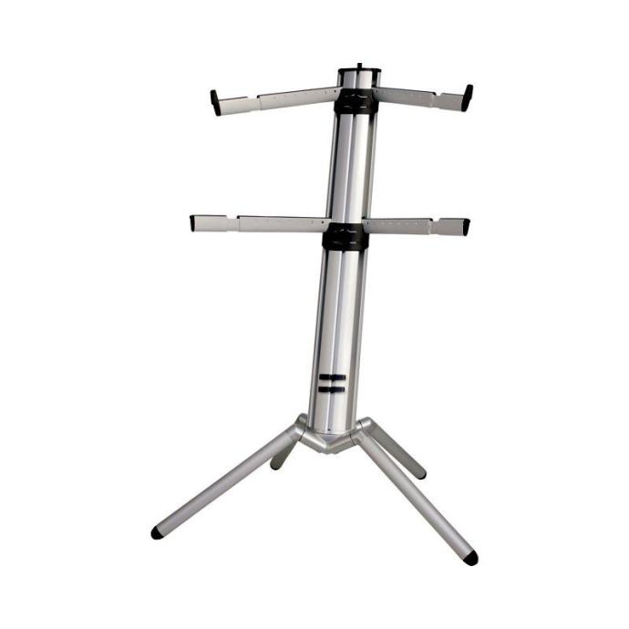 K&M SPIDER PRO stalak za klavijature. Kataloška šifra K&M Spider Pro stalka: 18860-000-30. Boja: srebrna. Vrhunski K&M stalak za dvije klavijature, profesionalni model, izuzetno stabilan i čvrst, maksimalno opterećenja: 35 kg.