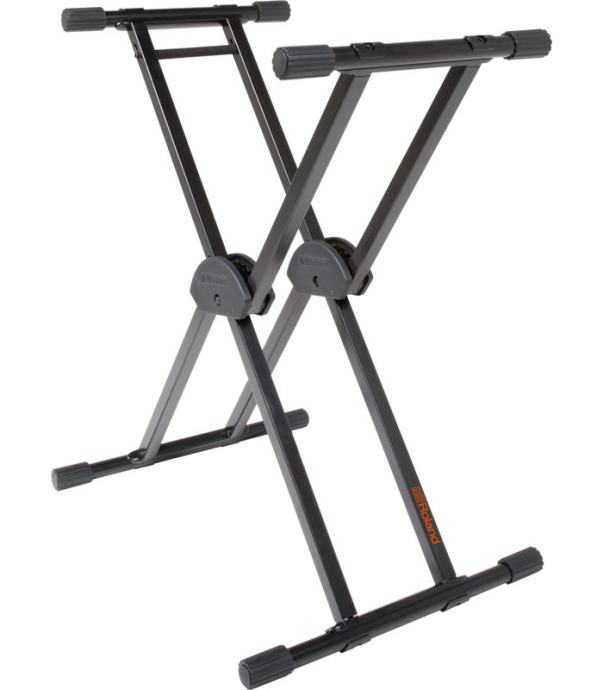 KS-20X uzima standardni dizajn X stalka i pojačava ga sa duplim osloncem. Odličan izbor za većinu klavijatura za pozornicu i studio, uključujući i modele sa 88 tipki. Čelična konstrukcija, poluga na oprugu, spojka za jednostavno podešavanje visine i podesivi gumirani naglavci daju odličnu stabilnost.