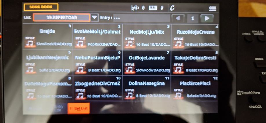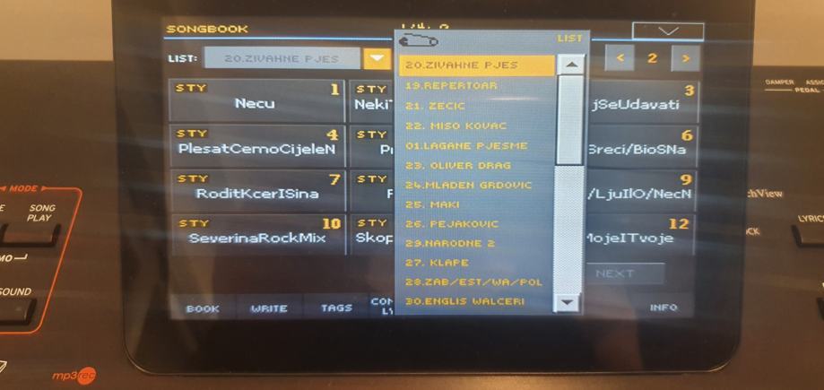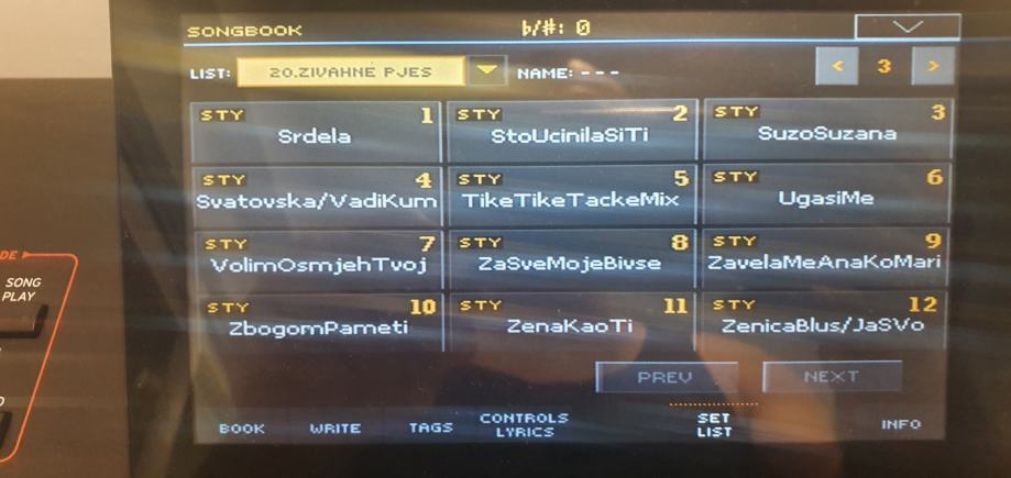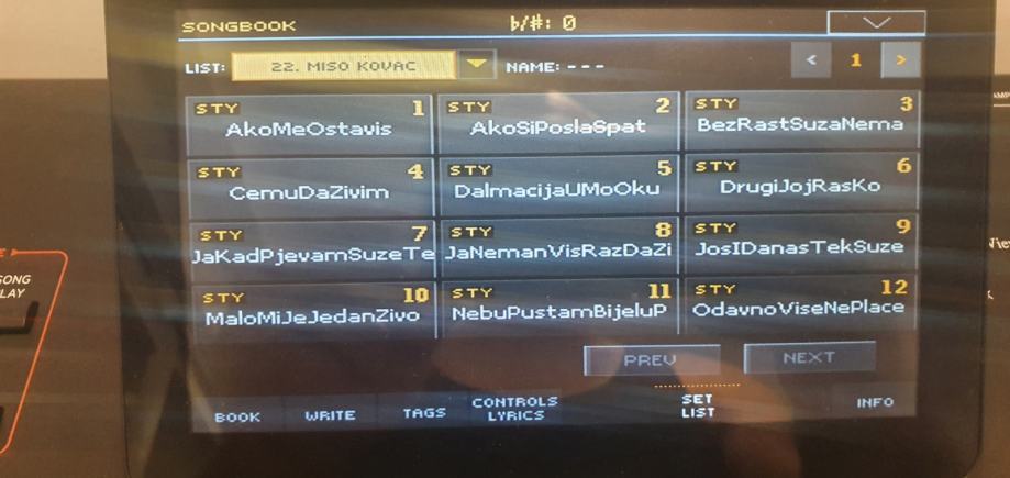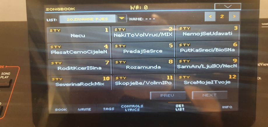 poslozen sounbok sa gotovo oko 500 pjesama sve poslozeno i iznevilirano svaki sempl i bubanj gitare i uz svaku pjesmu ide i tekst tako da vam netreba dodatni monitor