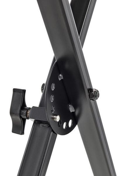 X stalak za klavijature, miksete ili slično. Brza brava za zaključavanje, podesivi gumeni nosači, dubina nosača: 40 cm. Visina podesiva od 50 cm (širina: 87 cm) do 92 cm (širina: 46 cm). Maks. nosivost: 20 kg. Težina: 2,5 kg. Boja: crna.