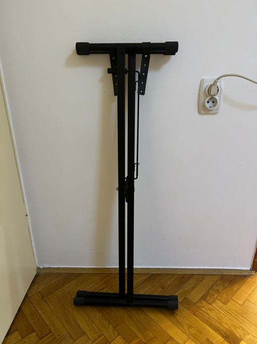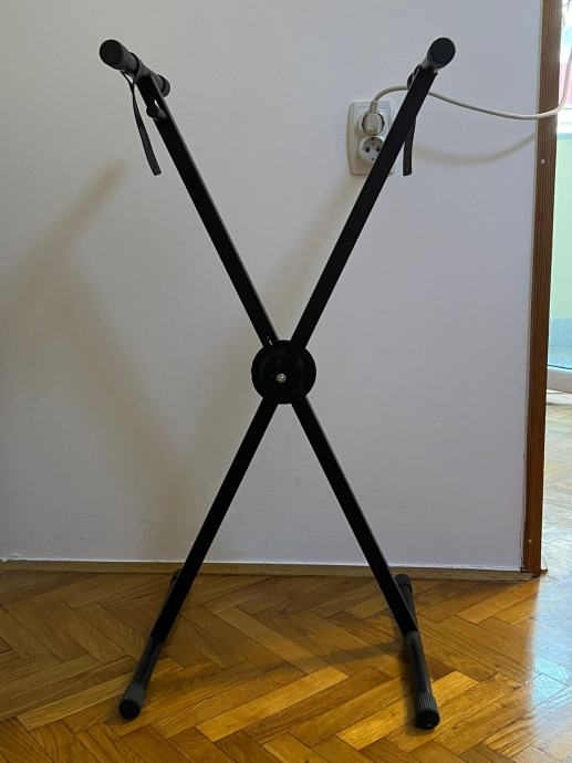X stalak za klavijature, miksete ili slično. Brza brava za zaključavanje, podesivi gumeni nosači, dubina nosača: 33 cm. Visina podesiva od 48 cm (širina: 87 cm) do 96 cm (širina: 29 cm). Težina: 2 kg. Boja: crna.