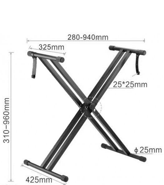 VESTON KS-7 je stalak za klavijaturu čvrste konstrukcije, s dvostrukim nogama i mogućnošću podešavanja visine od 31 do 96 cm.