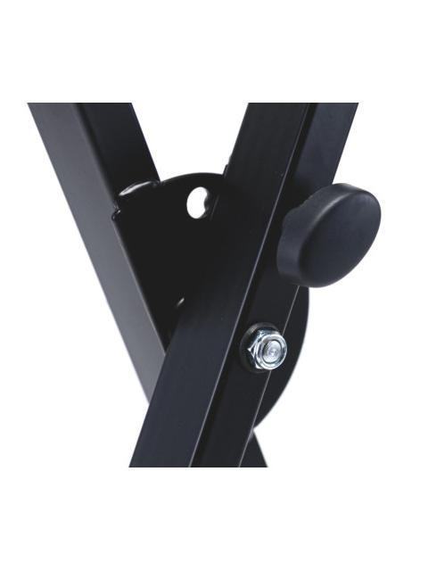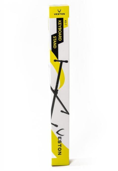 VESTON KS-7 x-stand stalak za klavijaturu. VESTON KS 7 stalak za klavijature, izuzetno čvrste konstrukcije i sklopivog dizajna što ga čini praktičnim za transport. Visina stalka je podesiva u 5 pozicija i namijenjen je najčešće klavijaturama sa 5 oktava. Veston KS7 ima stabilne čelične nosače (25 mm) koji osiguravaju izdržljivost klavijaturama srednje veličine, a podesivi gumeni nastavci garantiraju stabilnost postolja na neravnim površinama.