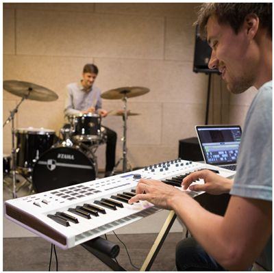 Sa svojom kvalitetnom izradom, izvrsnom ergonomijom, funkcijama koje pružaju profinjenu i izrazito dinamičku kontrolu virtualnih instrumenata i DAW softvera, Arturia KeyLab MkII 49 'podigla je letvicu' kada pričamo o profesionalnim MIDI klavijaturama! Na pozornici ili u studiju svakako želite kontroler koji će Vam omogućiti da vrhunski odradite posao. Za razliku od mnogih MIDI kontrolera koji su u potpunosti izvedeni od plastike, KeyLab MkII sadržava izrazito čvrsto i lagano aluminijsko kućište. 61 tipka s aftertouch efektom, 16 RGB osvijetljenih padova, 9 velikih kliznih potenciometara, 9 rotary encodera, 4 CV izlaza, 5 ulaza za expression pedale. Boja: bijela.