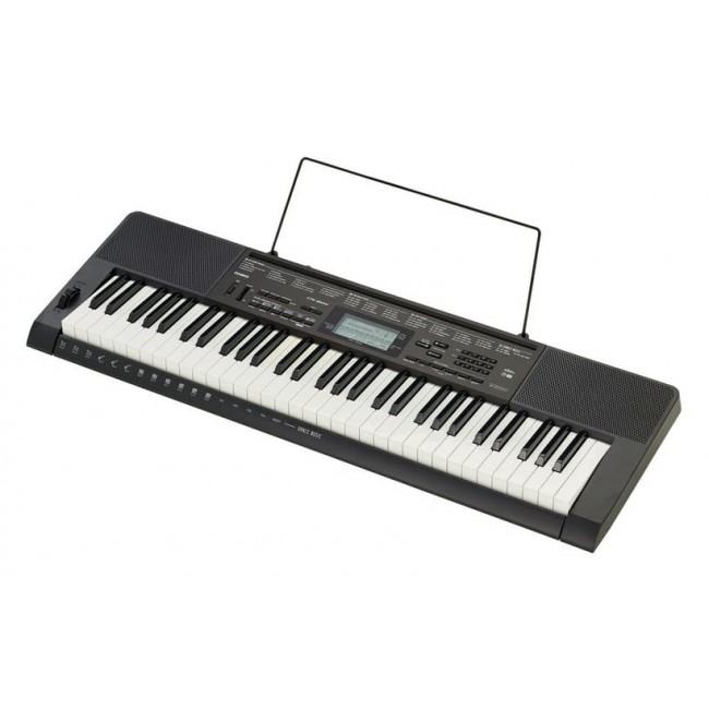 Klavijatura pogodna za početnike, a i naprednije svirače, 61 dinamička tipka, 48 voice polifonija, 400 zvukova, efekti, 60 preset pjesama, 100 preset ritmova, funkicja za učenje lijeve, desne i obje ruke, ptch bend kotačić, transposer, metronom, USB MIDI izlaz, audio input 3,5 mm stereo jack, izlaz za slušalice / razglas, sustain pedala, zvučnici, mogućnost rada na baterije, dimenzije 946 x 307 x 92 mm, težina 3,4kg, pripadajući strujni adapter.