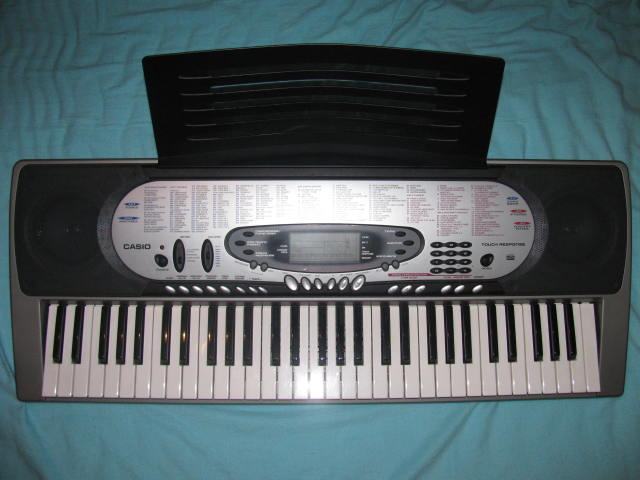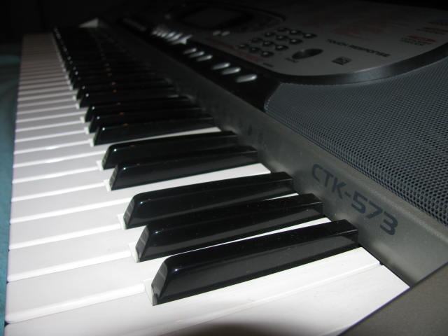 Casio CTK-573 synth. 5 oktava, tipke osjetljive na dodir, odličan za početnike zbog grafičkog prikaza lekcija (100 pjesama i klasičnih djela), 3 stupnja učenja, lijeva, desna ruka i zajedno. Ugrađeni zvučnici, MIDI in i out, izlaz za slušalice. Sve u odličnom stanju, jako malo korišteno. Šaljem dobro upakirano HP expressom. Cijena fiksna, bez zamjena.