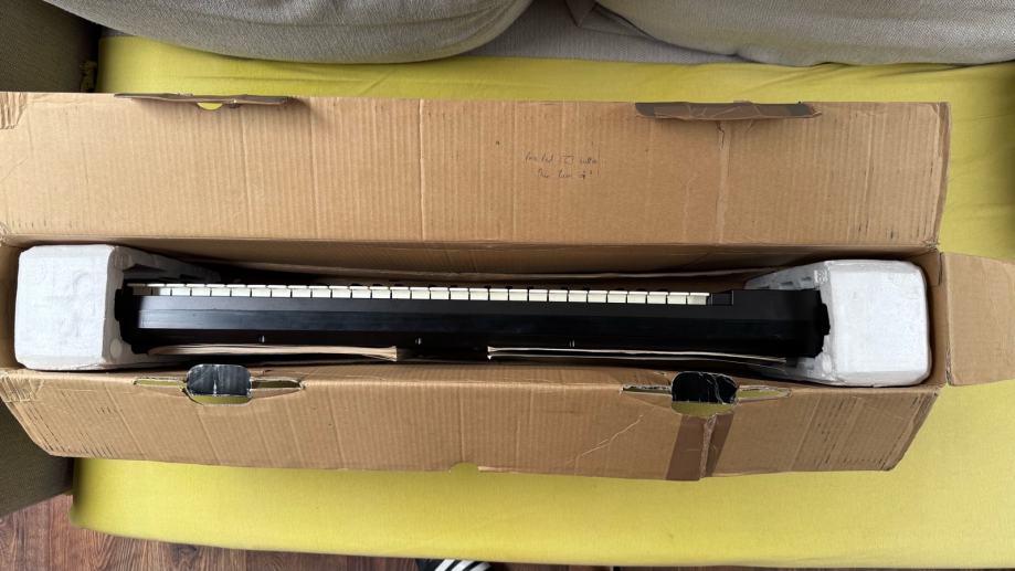 U paketu dolazi s izvornom kutijom, MIDI bilježnicom, user manualnom i adapterom za napajanje kakav je i dolazio 1986 kad se prodavao kao nov.
