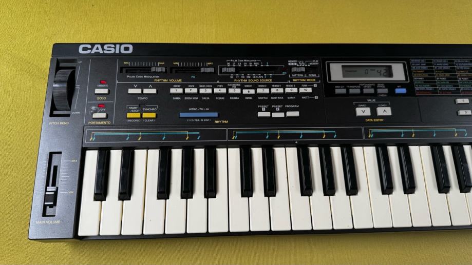 Legendarna klavijatura "Južnog Vetra" iz 1985 godine. Sve radi odlično osim LCD ekrana, nekad radi nekad ne ali sve funkcije se odrađuju sa tipkama tako da skoro pa niti ne smeta.