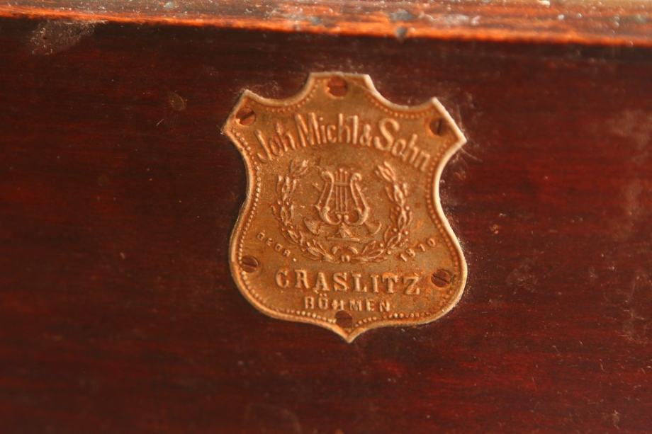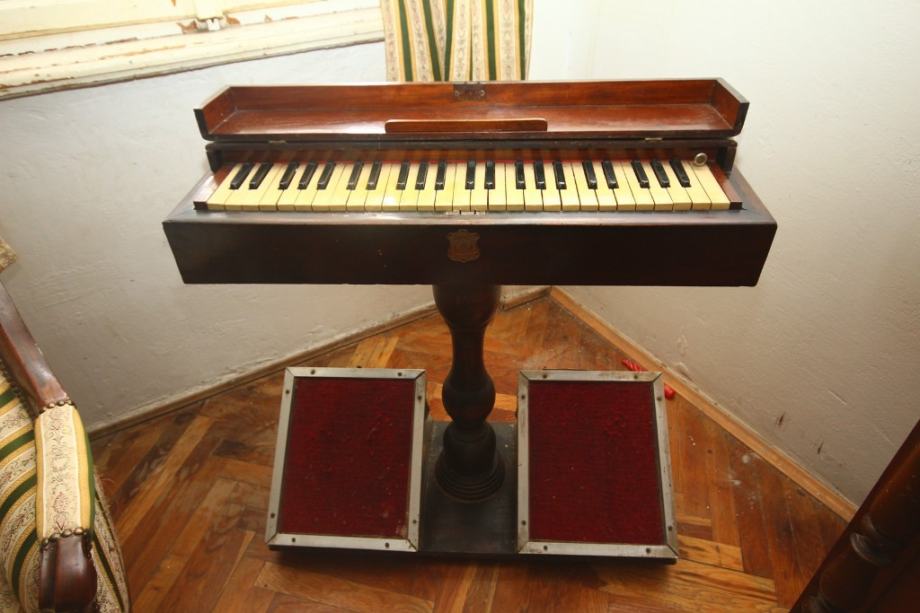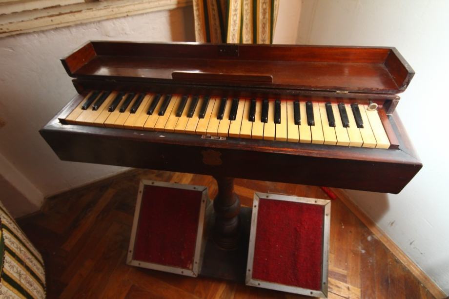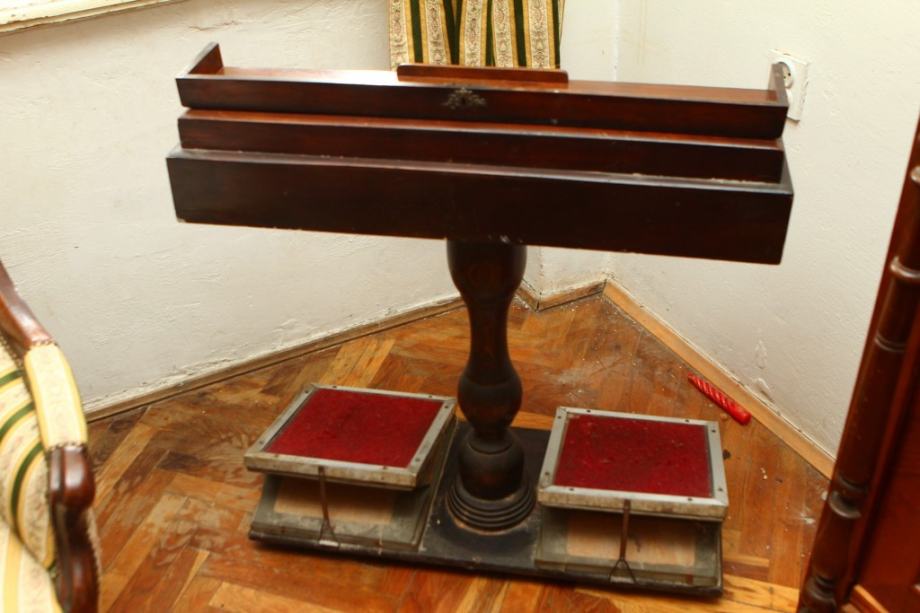 klavijatura duzine 68cm, duzina78cm.sirina38cm, noga duzina 60 cm, mjehovi duzina 29,5 i sirina 35. postolje duzina 79cm koje stoji na 4 niske nogice. U odlicnom je stanju. Veoma raritetni instrument, možda i unikat