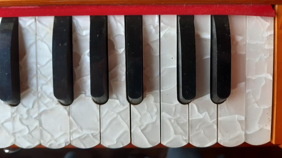 Harmonij je nakon dolaska u Hrvatsku generalno sređen, podešen, naštiman na 440Hz + 5% standard i može se koristiti skupa s drugim instrumentima, kao i za studijske snimke. Bolji je nego nov. :)