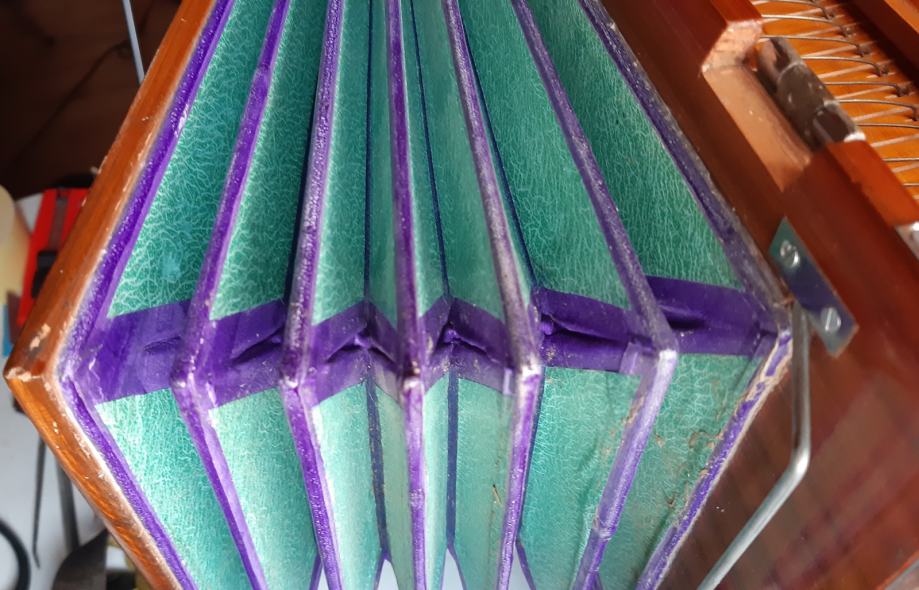 Drveni poklopac omogućuje da se po potrebi harmonij može svirati tiše ili glasnije... što je sve zorno prikazano u videu.