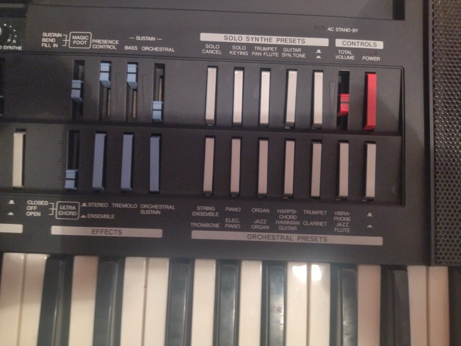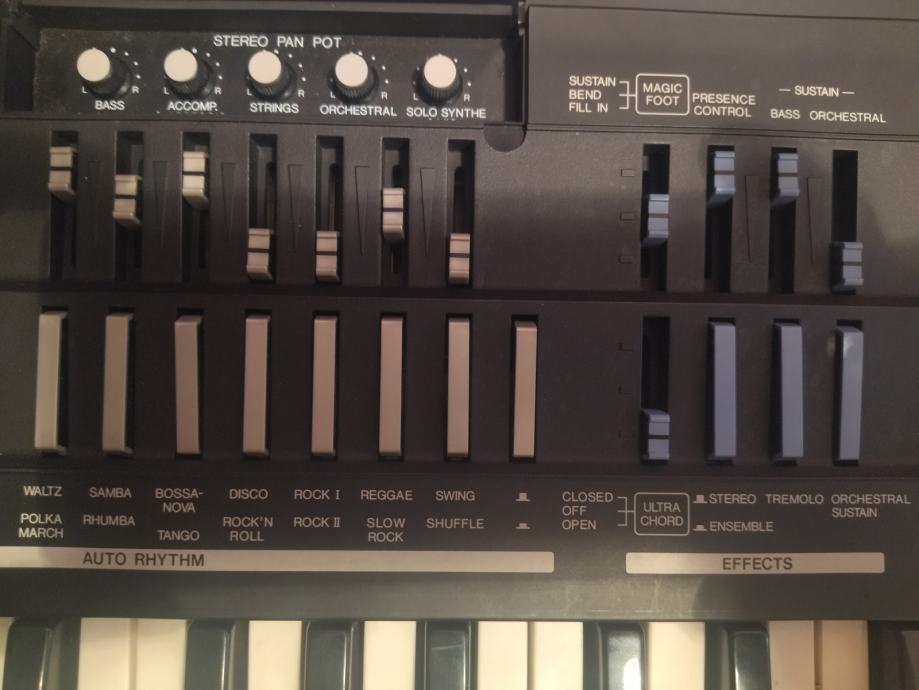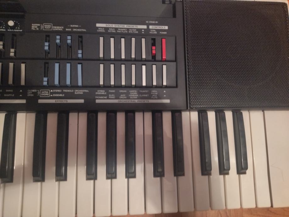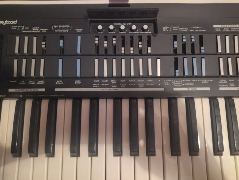 Vrlo rijetka i neobična klavijatura sa preset analog syntg, string synth, analogna ritam mašina koja odlično zvuči i još nekoliko elemenata koji tvore pratnju za aranžer.
