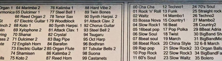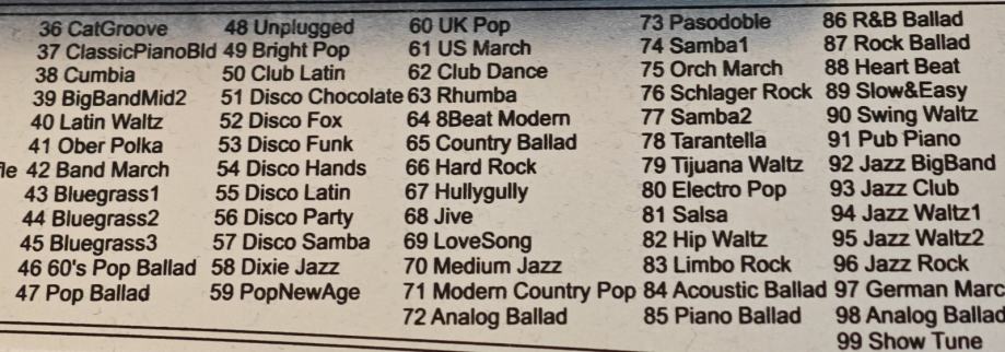 Ritmovi: 100 ritmova (Rock, Jazz, Samba,...).