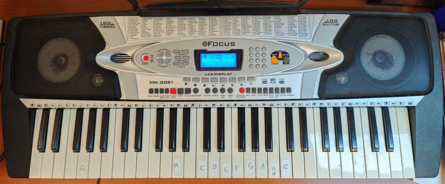 Potpuno funkcionalna za učenje sviranja, nije mala igračka , ima tipke veličine cca 135x22 mm i ima dovoljan broj opcija za početnike
