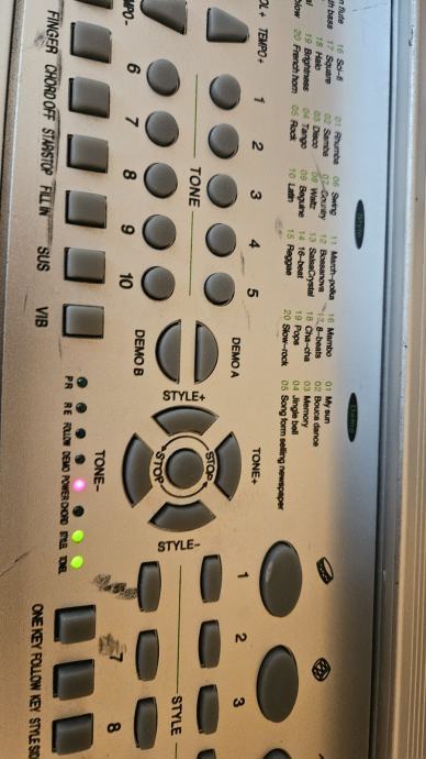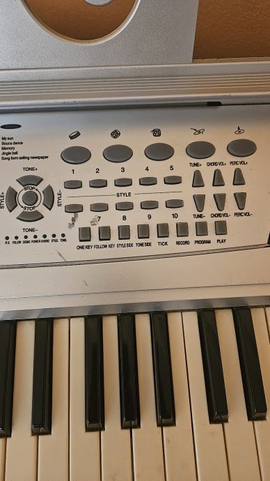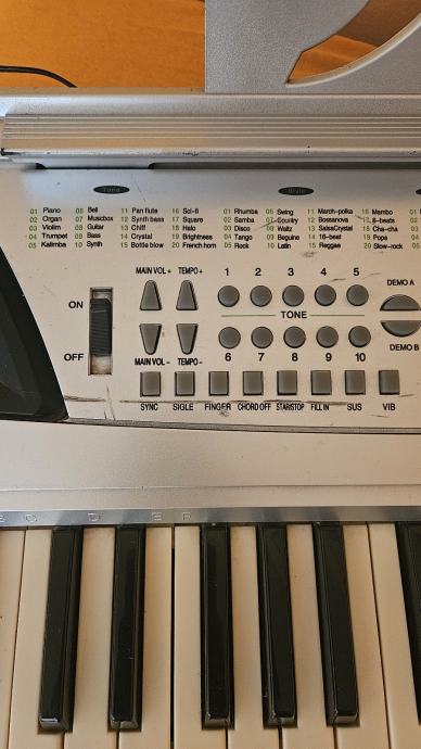 Prodajem klavijature (sintisajzer) na struju, može i na baterije. 54 tipke. Sve funkcije i tipke rade. Vidljivi tragovi korištenja, sitne ogrebotine Ništa strašno.