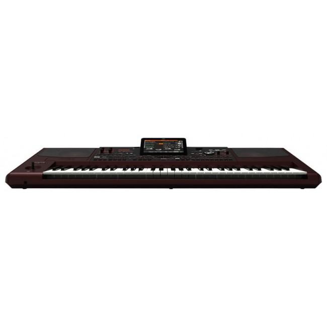 Korg Pa1000 profesionalna aranžer klavijatura. Ova arranger klavijatura ima 61 polutešku tipku, touch response, 128 voice poliphony, 3 band EQ, EDS-X, DNC, više od 1750 zvukova, 512 custom zvukova, GM/XG sound i 107 bubnjarskih setova, više od 430 stilova, metronom, transpose, 690 MB interne memorije, 300 MB PCM user memory, 148 master efekt tipova, MP3 i MP3+G, MP3 player i snimač, TFT TouchView display, 16 backing track sekvencer, lyrics indikator na ekranu, Micro SD slot, izlaz za slušalice i video, 1 RCA, MIDI in/out, USB, ulaz za damper pedalu, 2 x 33 W zvučnike, stalak za note i kabel za napajanje..